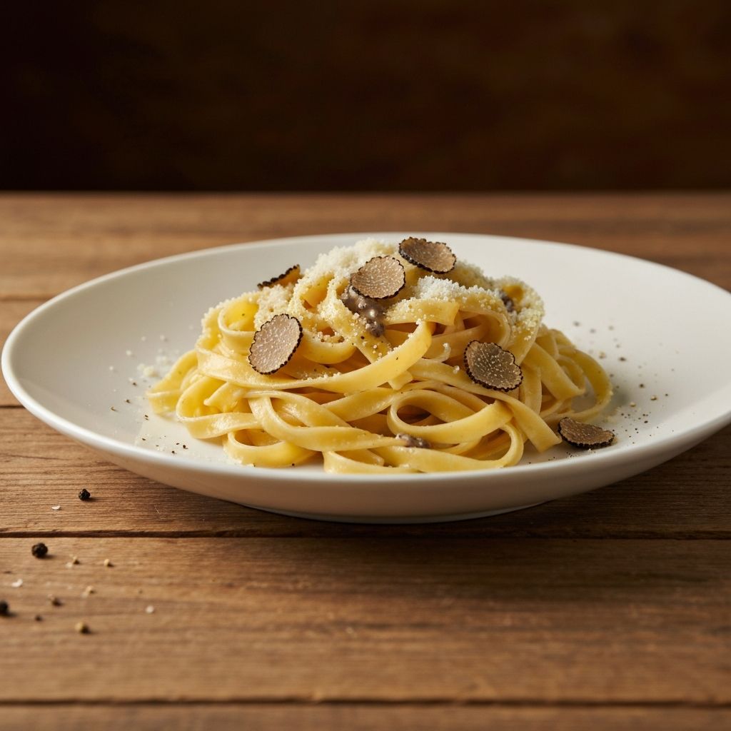 Домашняя паста с чёрным трюфелем и сливочным соусом